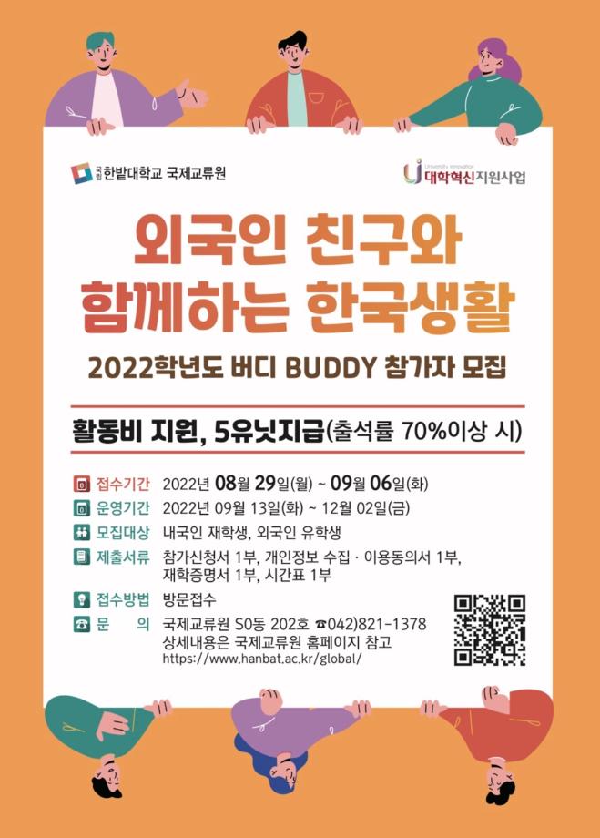 국제교류원에서는 내국인 재학생과 외국인 유학생 간 교류의 기회를 제공하고 타문화에 대한 이해와 존중, 외국인 유학생의 한국유학생활 적응, 전공교류 등 국제적 사고 함양을 위해 버디, 랩버디 프로그램을 진행하니 학생들의 많은 참여를 바랍니다.