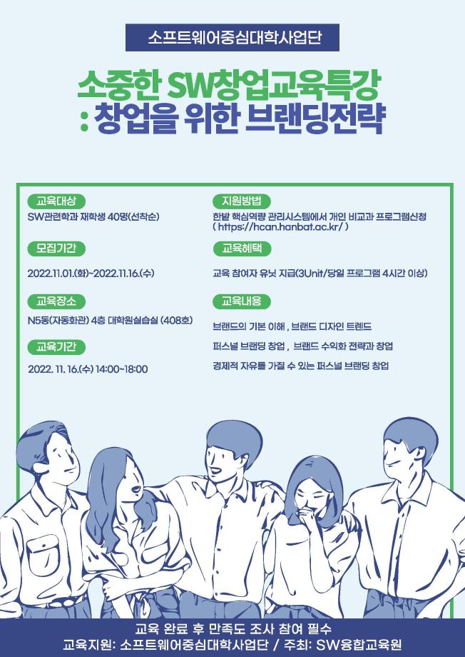 1. 11. 16.(수) "소중한 SW창업교육 : 창업을 위한 브랜딩 전략" 14시~18시 / N5동 408호