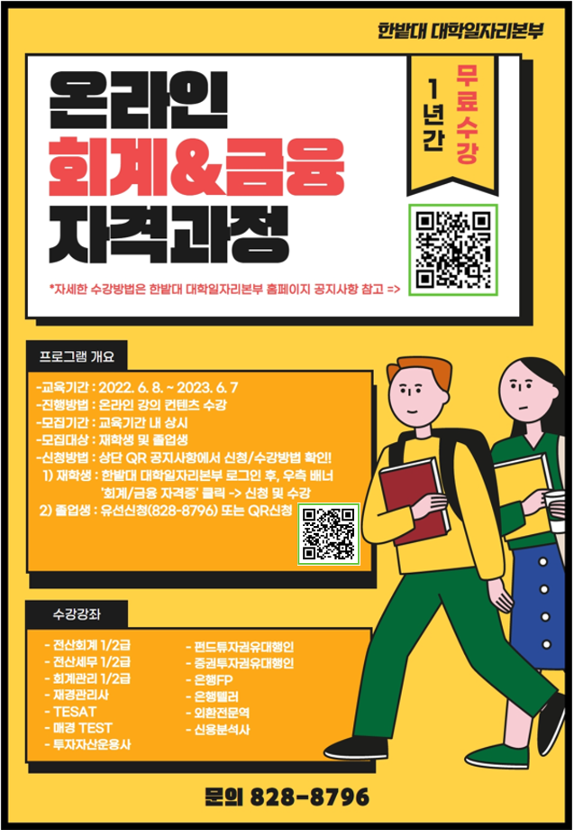 2022 (온라인) 회계금융 자격과정을 아래와 같이 운영하오니 각 학과에서는 관심 있는 학생은 참여바랍니다.