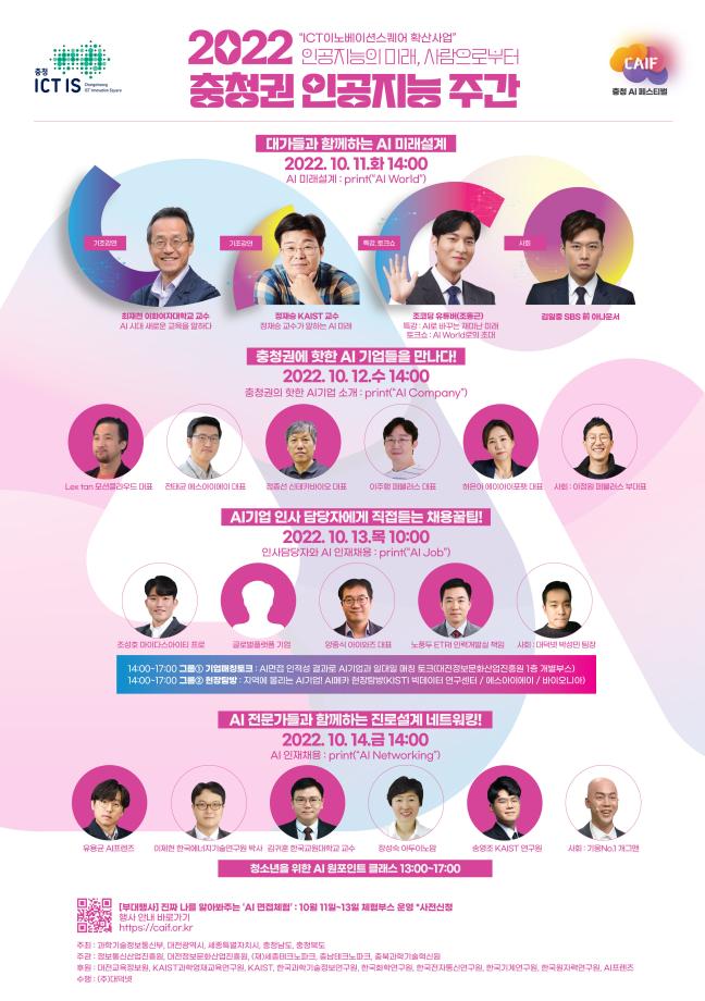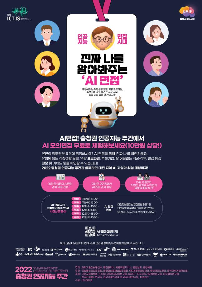 ‘2022 충청권 인공지능주간’ 행사를 다음과 같이 개최하오니, 인공지능, 컴퓨터공학, 코딩 등에 관심 있는 학생은 참고바랍니다.