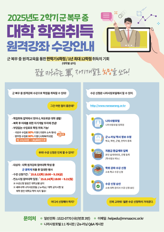 2025학년도 제2학기 군 복무 중 대학 원격강좌 학점취득 안내