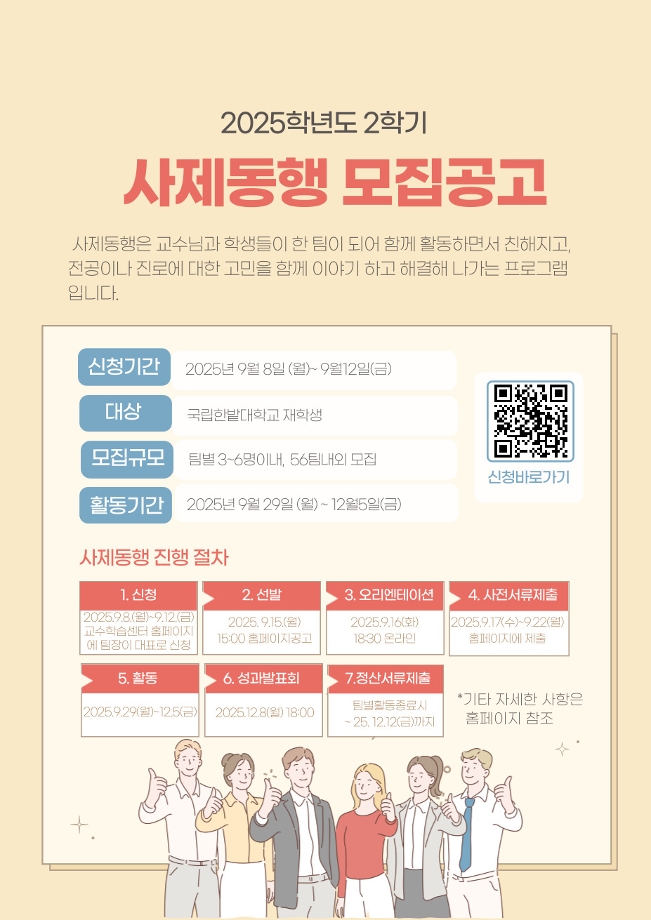 5. 신청방법 : 교수학습센터 홈페이지-사제동행-온라인신청(ID,PW한밭대학교 포털과 동일)